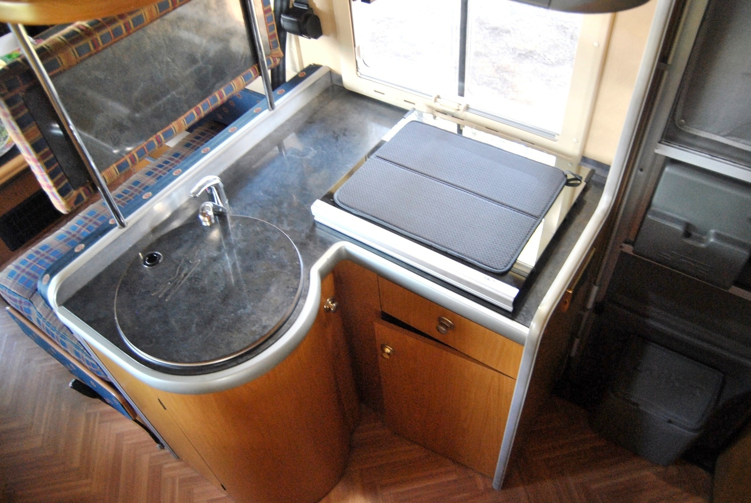 Situada a la part davantera de l'habitacle, convé especialment a nens. Es forma normalment en obrir la banqueta dels seients i baixant la taula del saló.