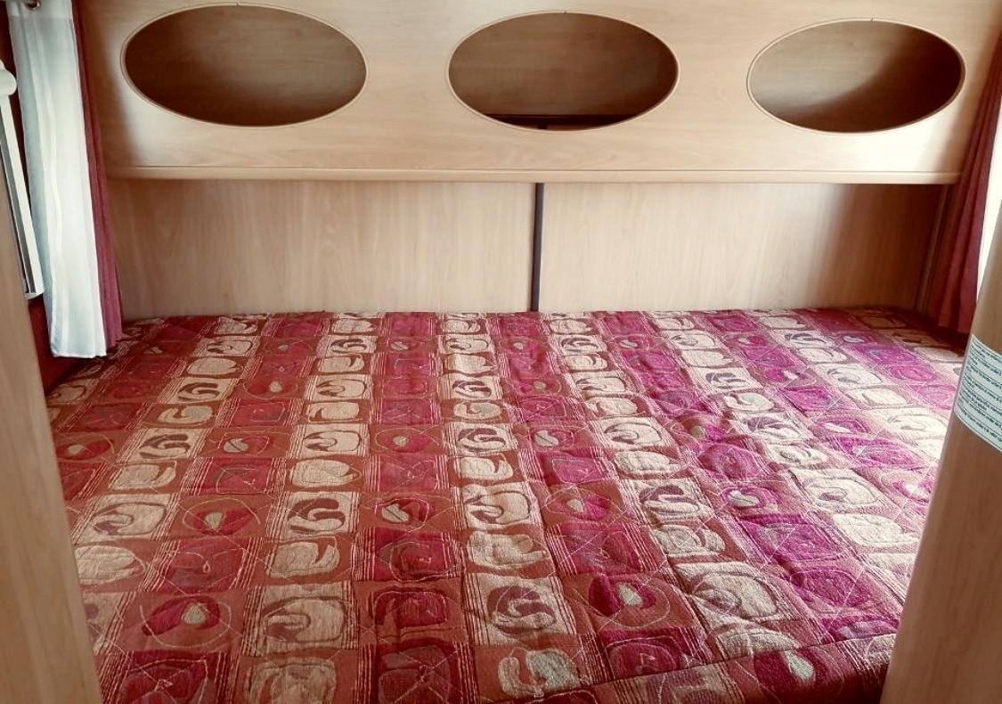 Situada en la part posterior del vehicle de manera transversal, ocupant tota l'amplària del vehicle. Permet beneficiar d'espai en la zona habitable i de la comoditat d'un gran llit doble.