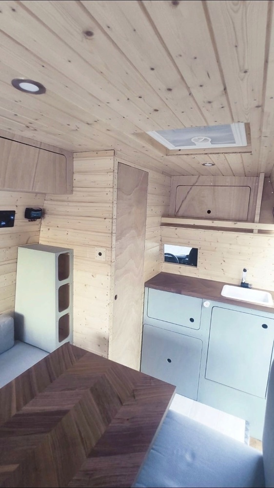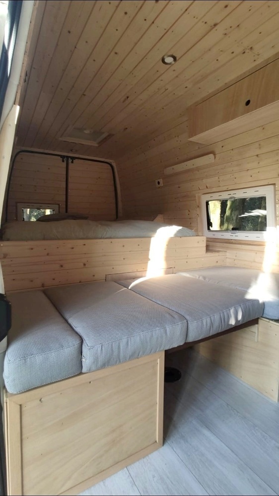 The 100W solar panel recharges 2 independent 110Ah batteries, enough to supply energy for all the electrical components. The Van has 4 USB sockets and 2 cigarret sockets (12v).