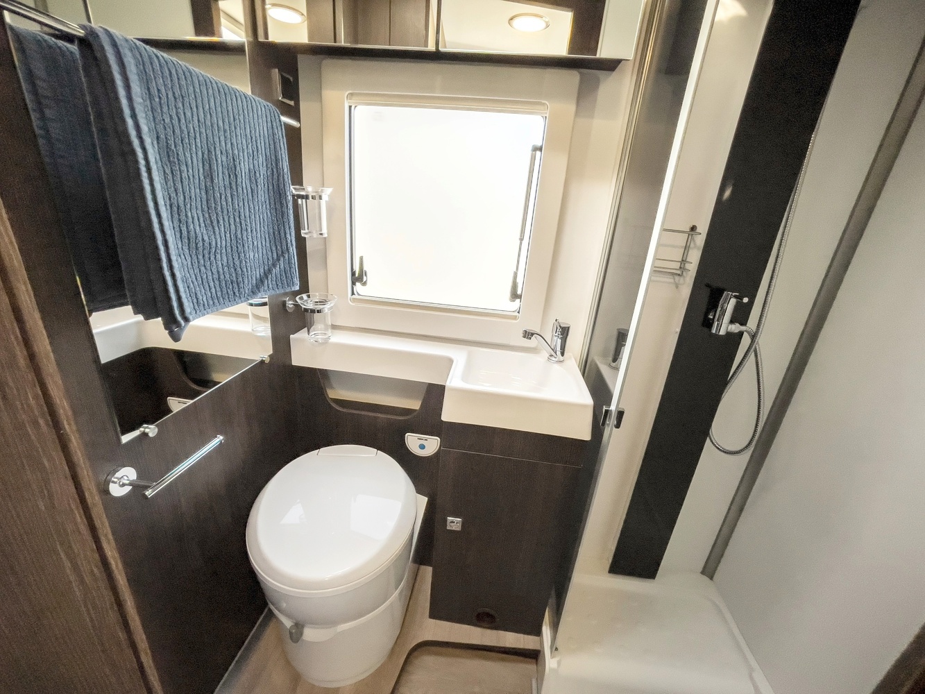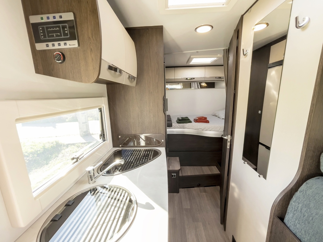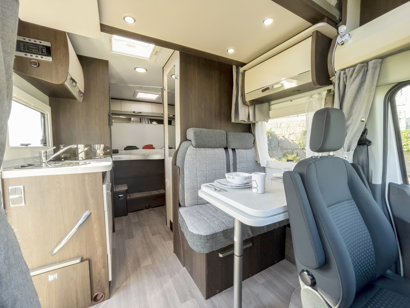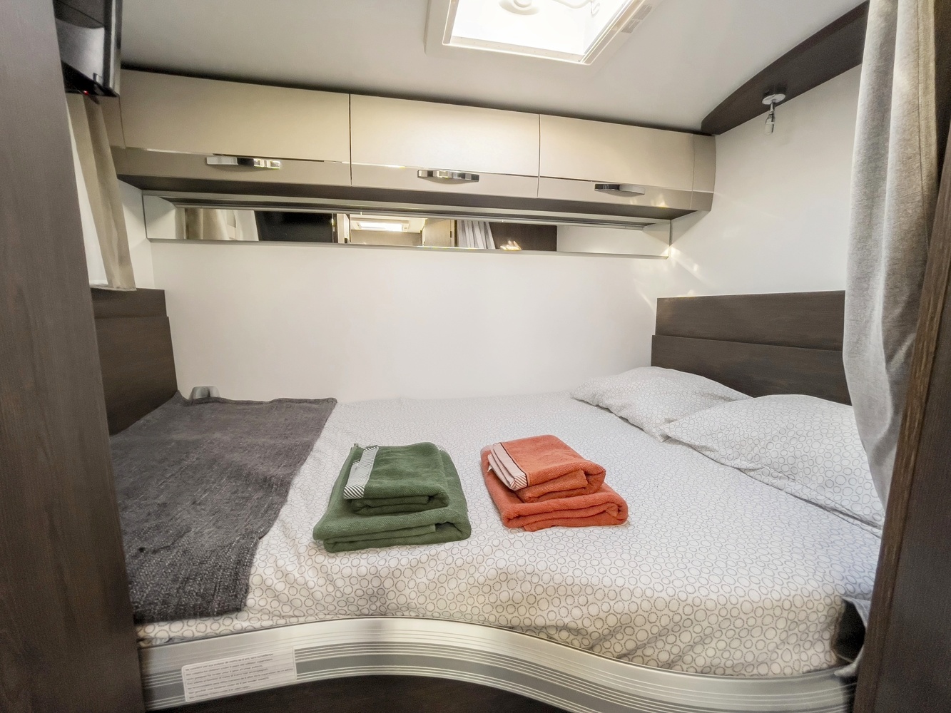 Situada en la part posterior del vehicle de manera transversal, ocupant tota l'amplària del vehicle. Permet beneficiar d'espai en la zona habitable i de la comoditat d'un gran llit doble.