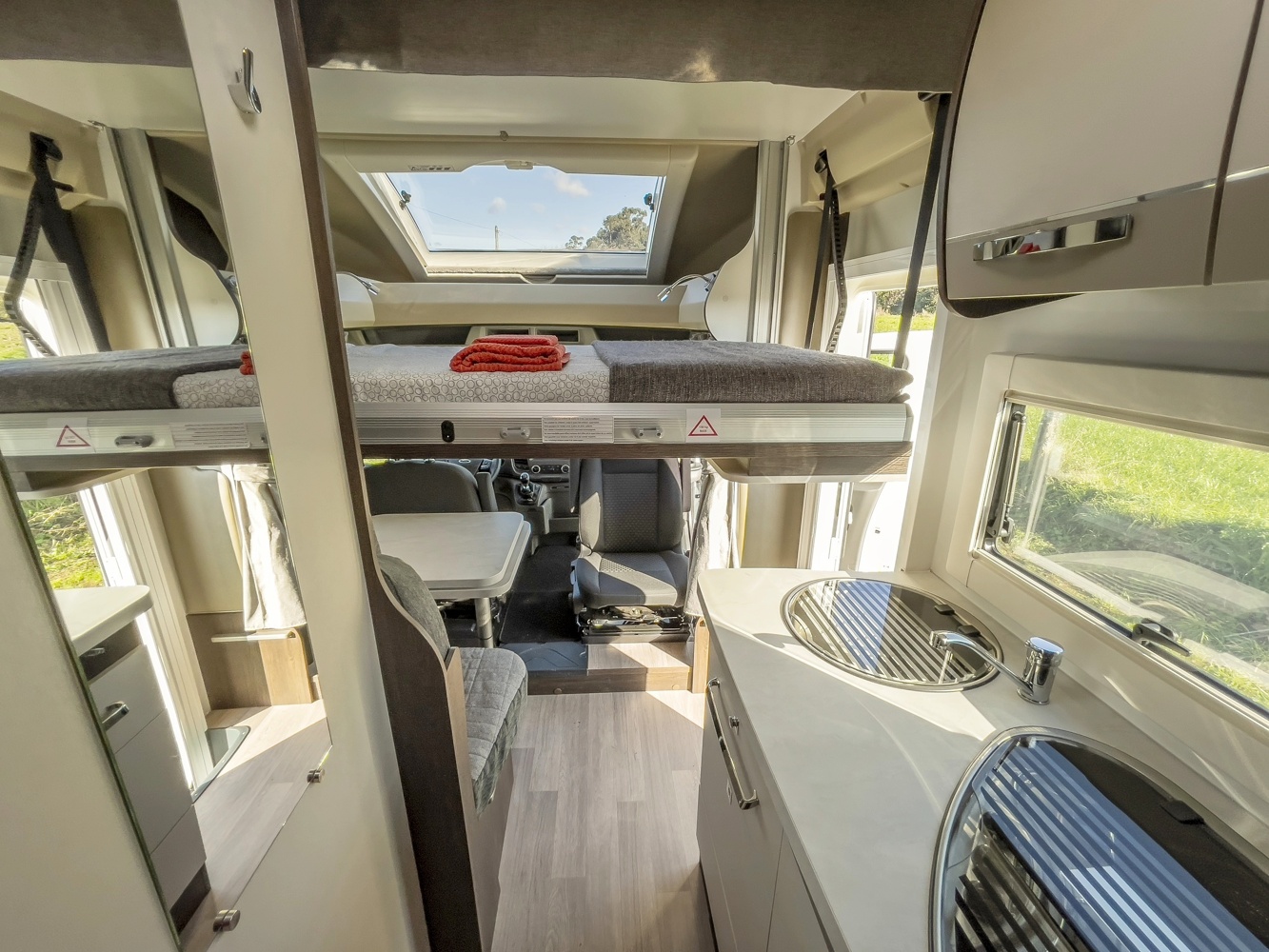 Llit que resulta de l'obertura del sostre des de l'interior. Permet disposar d'un llit doble sense ocupar espai en la zona interior del vehicle.